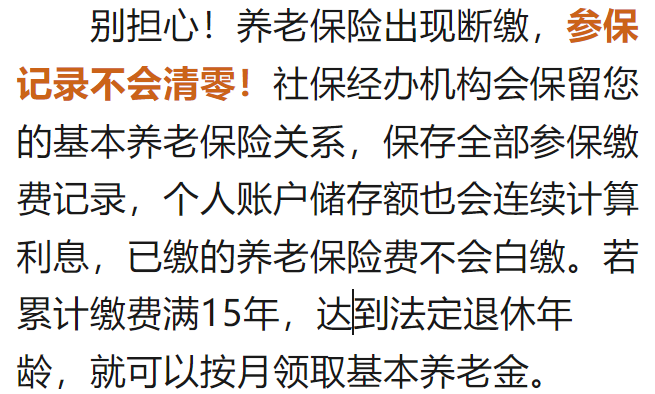 養(yǎng)老保險(xiǎn)中斷繳費(fèi),之前繳納的錢會(huì)過期作廢嗎?記錄會(huì)清零嗎?還能領(lǐng)養(yǎng)老金嗎?